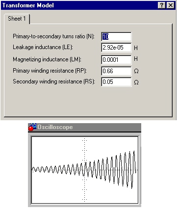 transformer with the transformer model data shown below in EWB 5.12 format.