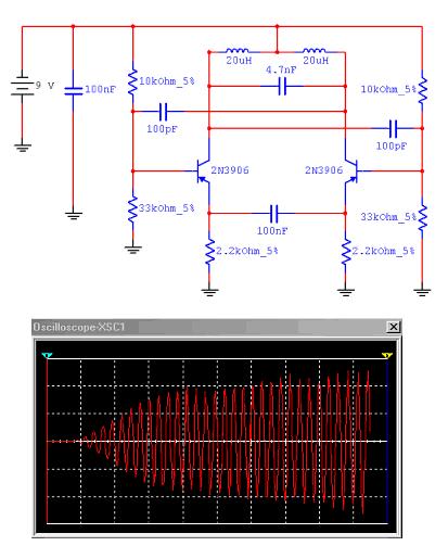 This is a Multisim 7 simulation schematic and an Oscilloscope